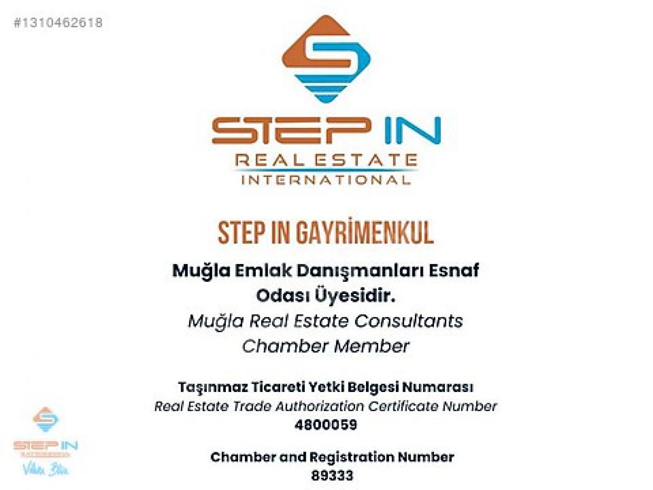 STEP IN GAYRİMENKUL, Muğla Emlak Danışmanları Esnaf Odası Üyesidir.